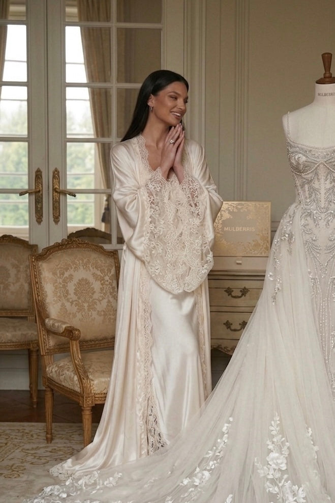 For the bride in her most exquisite moments deserves to be surrounded by nature's purest — pure Mulberry silk from Mulberries. Her quiet companion, from the first fitting to the last moment.